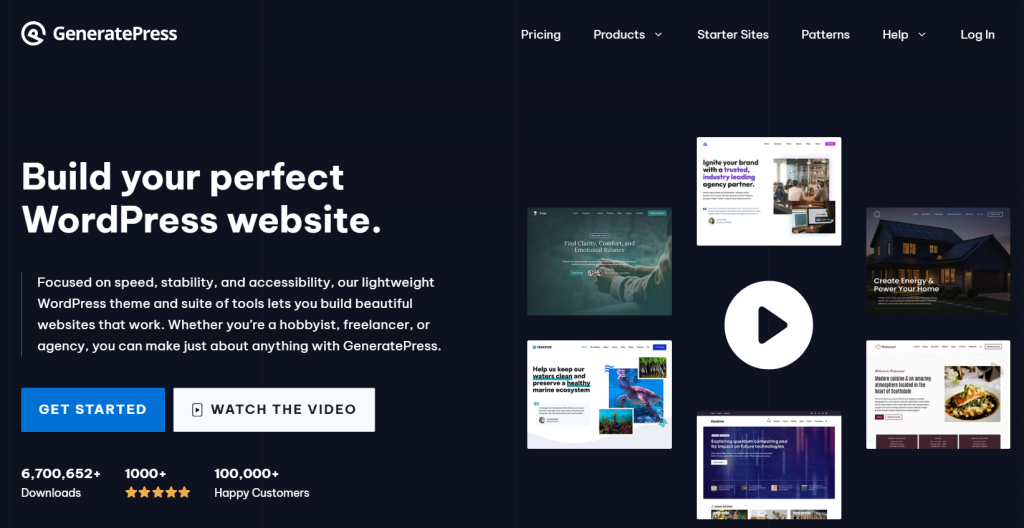 There is a GeneratePress free theme, but to unlock all features such as the Starter Sites, Theme Library, 100’s of customization options you’ve got to purchase their annual plan at $59/year.