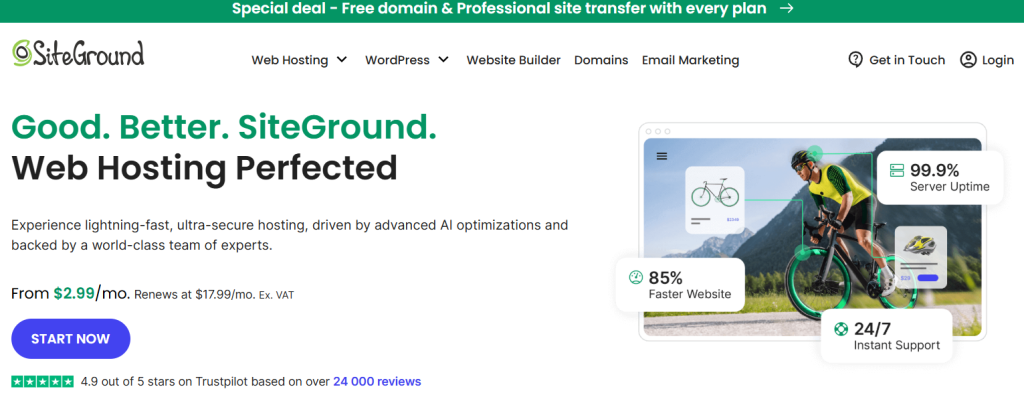 The hosting biz offers AI-powered tools, fast loading, and leading security. It is known for very affordable first-year offer, thus allows you to fully experience their services for a whole year at the price of 1-month.