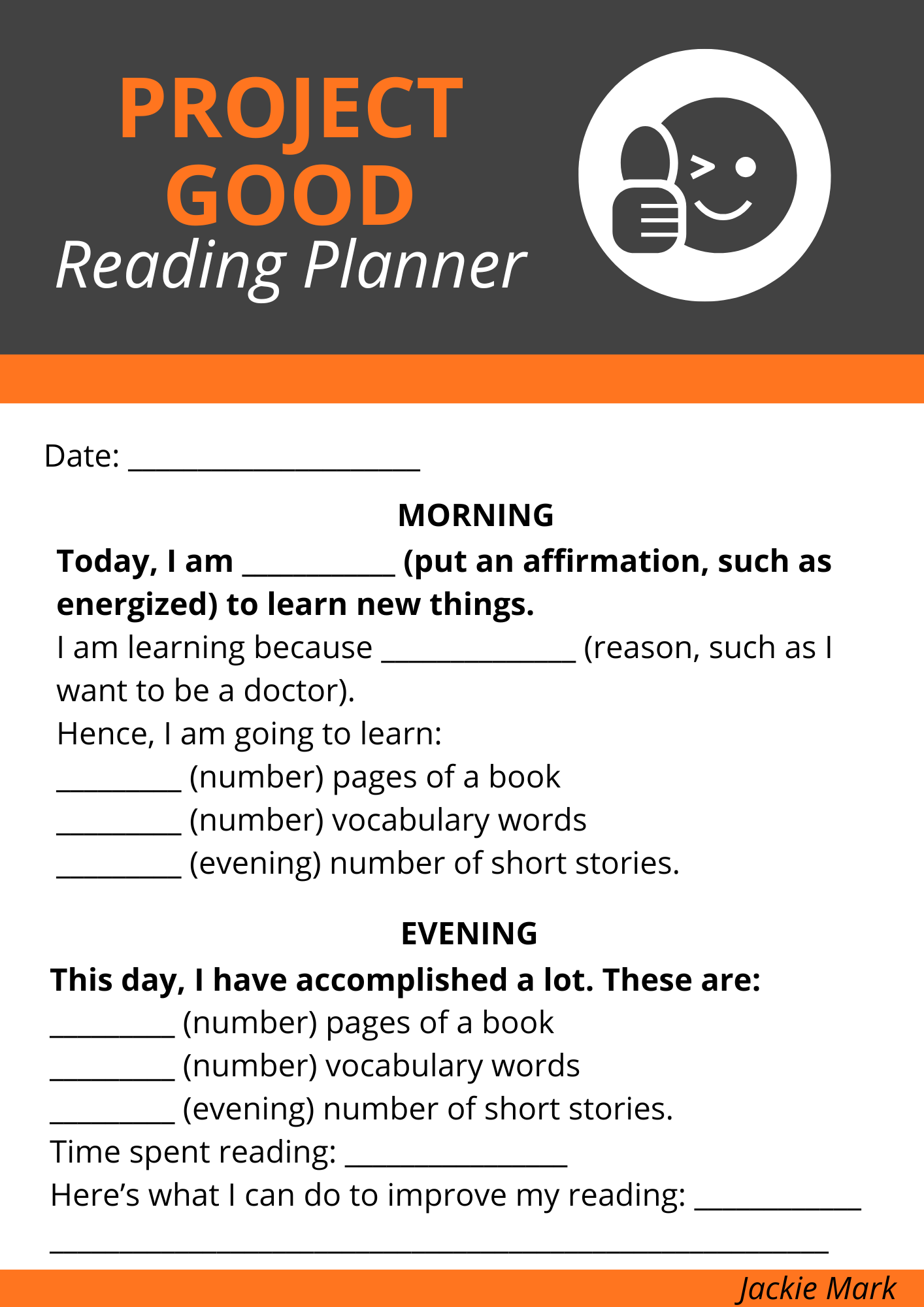 By having a planner to track the pages read, vocabulary words learned, and number of short stories being comprehended, the learner finds the having a reading habit both challenging and rewarding.